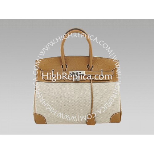 Hermes Birkin 35 cm in tela e pelle Togo marrone chiaro