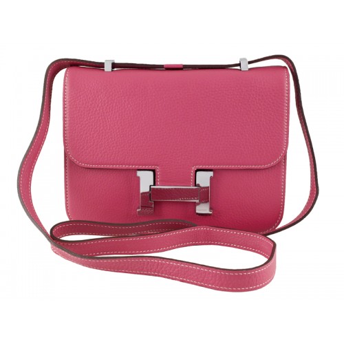 Borsa a tracolla singola Hermes Constance 23 in pelle Togo rosa