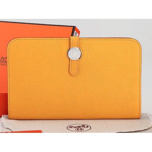 Portafoglio combinato in pelle originale Hermes Dogon Togo giallo