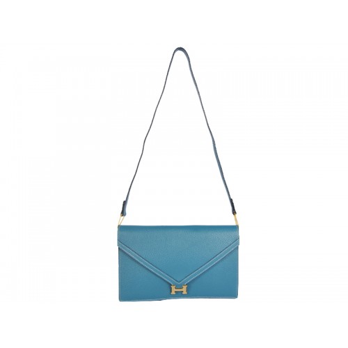 Hermes Pilot Envelope Clutch blu con finiture dorate