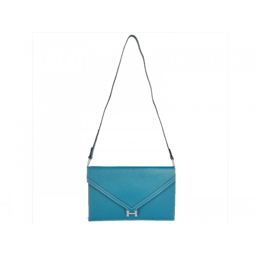 Hermes Pilot Envelope Clutch blu con finiture argentate