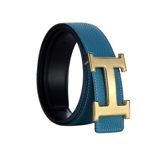 Cintura Hermes Togo in pelle con fibbia H dorata blu/nera
