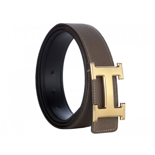 Cintura Hermes Togo in pelle con fibbia H dorata color cachi