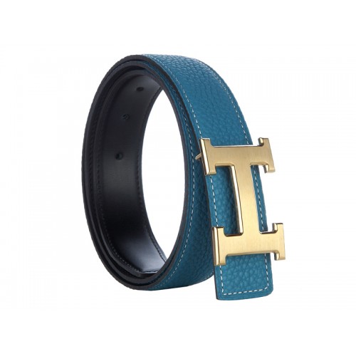 Cintura larga in pelle Hermes Togo con fibbia H dorata blu