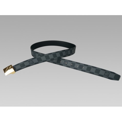 Cintura Damier Graphite con fibbia dorata e firma Louis Vuitton obliqua