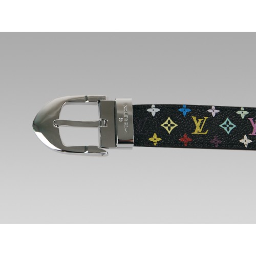 Cintura classica multicolore nera Louis Vuitton con fibbia argentata