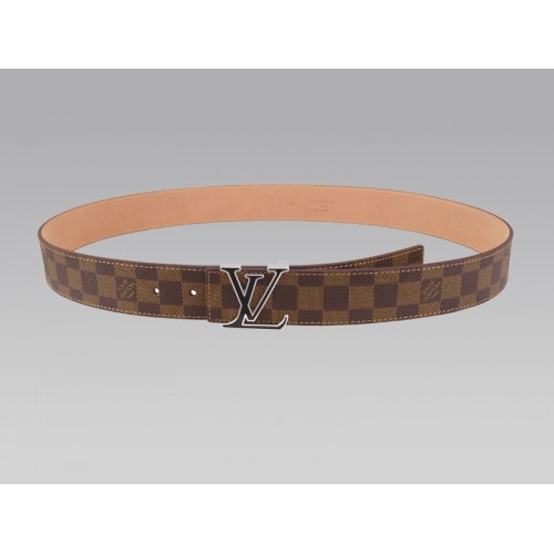 Cintura Damier con iniziale Louis Vuitton e fibbia nera e argento