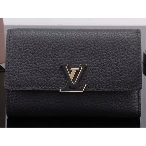 Portafoglio compatto Louis Vuitton Taurillon in pelle Capucines Noir m62157