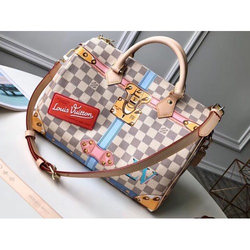 Realizzata in tela rivestita Damier Azur e toppe in pelle decorate con serigrafie trompe-l'oeil degli angoli del bagagliaio e storiche serrature LV, questa Speedy 30 è l'essenza stessa dello stile LV. Per coloro che desiderano ostentare le proprie credenziali di moda.