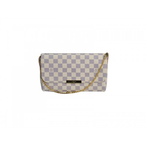 La versatile Pochette Favorite è deliziosa nella tela Damier Azur. La sua forma pura e femminile lo rende ideale per tutte le occasioni.