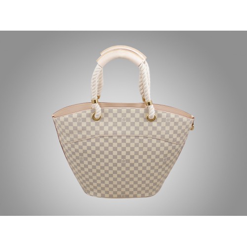 -Tessuta Damier Azur, fodera in tessuto e finiture in pelle bovina naturale