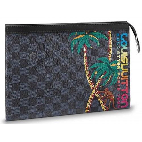 Ispirato alla sfilata uomo Primavera/Estate 2018, il tema Jungle presenta una giocosa stampa di palme e la firma arcobaleno Louis Vuitton in stile tavola da surf su tela Damier Cobalt. Compatta e versatile, con tanto spazio per gli oggetti essenziali, la Pochette Voyage può essere infilata in una borsa come marsupio da viaggio o portata a mano per un look più alla moda.