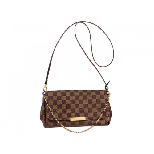 La versatile Pochette Favorite è deliziosa nella tela Damier Ebé. La sua forma pura e femminile lo rende ideale per tutte le occasioni.