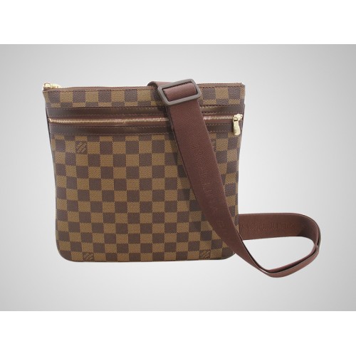 Louis Vuitton presenta una borsa piatta leggera e pratica in tela Damier, perfetta per l'uso in città o in viaggio. Una tasca anteriore con cerniera offre un comodo accesso al cellulare, all'iPod o ad altri accessori, mentre lo scomparto principale con cerniera contiene tutti gli oggetti essenziali per tutti i giorni o per i viaggi.