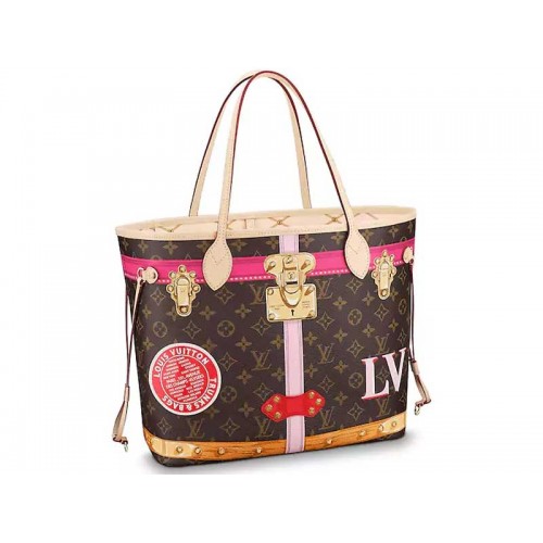Traendo ispirazione dagli iconici bauli della Maison, questa Neverfull MM reinterpreta con audacia la tela Monogram sovrapponendo serigrafie degli angoli del baule e storiche serrature LV per un effetto trompe-l'oeil che rinfresca questa borsa pratica e senza sforzo.