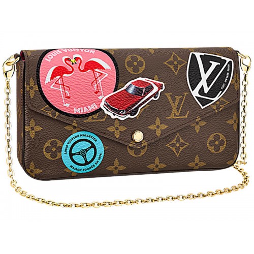 Questa pochette Felicie M62145 in tela con monogramma LV è dotata di numeri di serie e di modello, libretto di cura LV, schede LV ed etichette