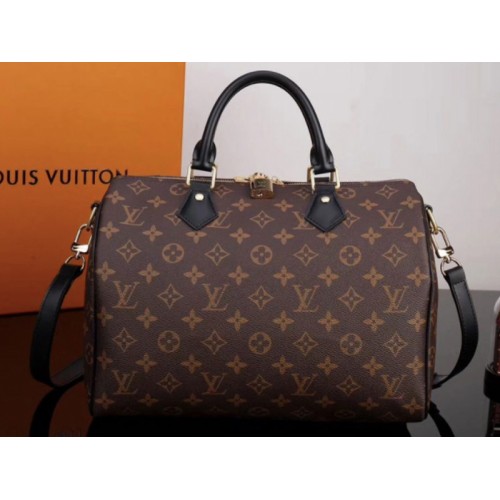 Louis Vuitton Monogram Canvas Speedy Bandouliere 30 con finiture in pelle nera