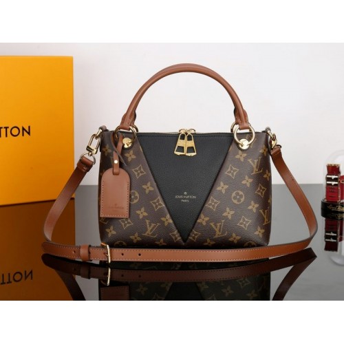 Ispirata alla "V" di Vuitton, la borsa V Tote è realizzata in tela Monogram con un grande pannello triangolare in pelle venata. È dotato di accessori color oro e di un cartellino in pelle e può essere portato in borsa o a tracolla grazie alla tracolla rimovibile.