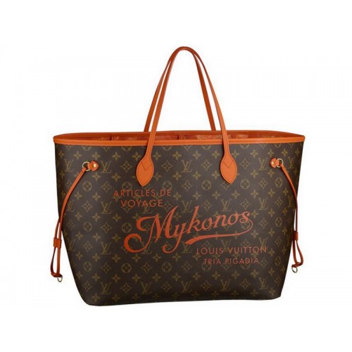 lo spirito dell'estate.Louis Vuitton reinterpreta il suo iconico neverfull in omaggio ai resort più celebri del mondo, Mykonos. Le scritte in stile vintage, le finiture in pelle arancione e la fodera con stampa floreale Ikat aggiungono fascino a questo borsone in edizione limitata, le cui caratteristiche pratiche e proporzioni generose lo rendono la scelta perfetta sia in città che in spiaggia.
