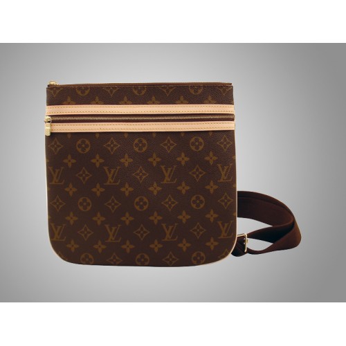 Louis Vuitton presenta una borsa piatta leggera e pratica in classica tela Monogram, perfetta per l'uso in città o in viaggio. Una tasca anteriore con cerniera offre un comodo accesso al cellulare, all'iPod o ad altri accessori, mentre lo scomparto principale con cerniera contiene tutti gli oggetti essenziali per tutti i giorni o per i viaggi.