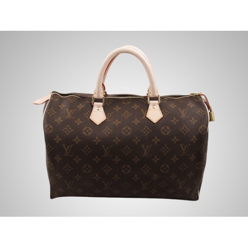 Versione borsetta della celebre borsa da viaggio Keepall di Louis Vuitton, la Speedy 35 è un capo essenziale, elegante e spazioso, per le esigenze quotidiane. Con robusti gambali rivettati, comodi manici rotondi e chiusura con cerniera e lucchetto.