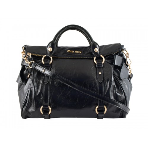 Borsa Boston grande in pelle lucida Miu Miu nera