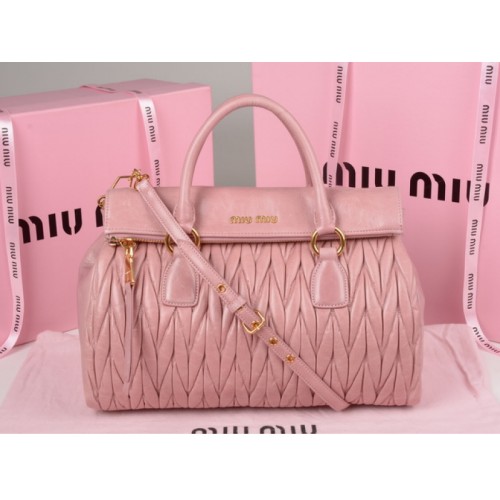 Borsa a mano con cerniera in pelle matelassé smaltata Miu Miu rosa