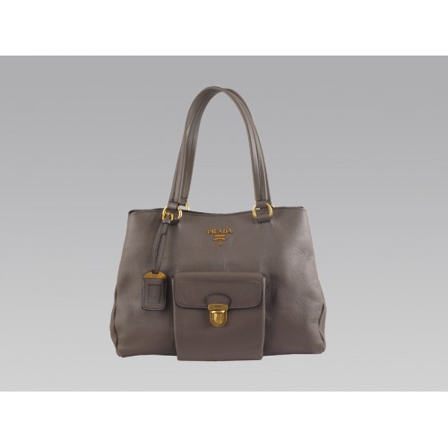 Borsa tote media in pelle di mucca Prada con tasca frontale grigia