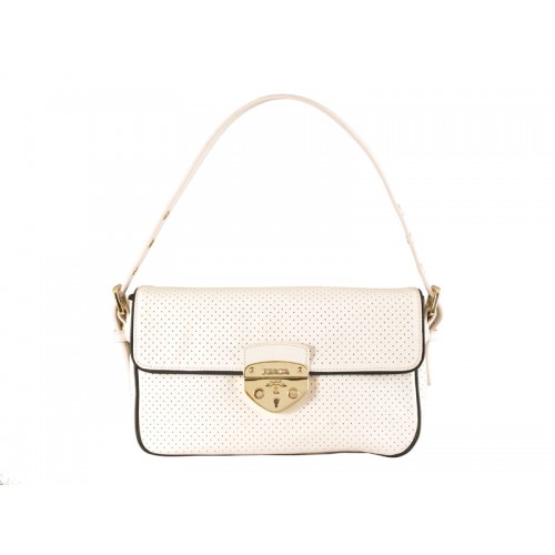 • Borsa a tracolla in pelle di vacchetta della collezione Prada Perforated, bianca