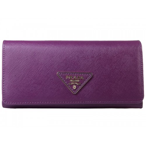 Portafoglio Prada in pelle Saffiano con logo triangolare viola