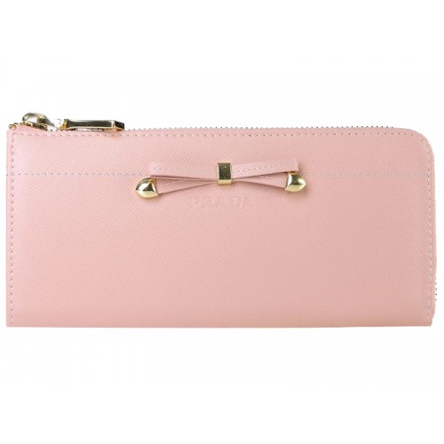 Portafoglio Prada Saffiano con cerniera e fiocco rosa