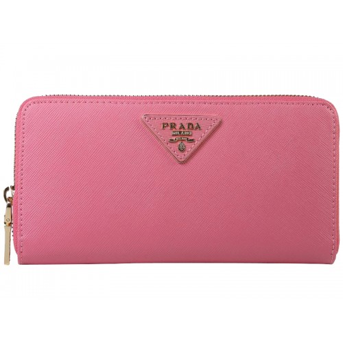 Portafoglio Prada Saffiano Zippy con logo triangolare rosa