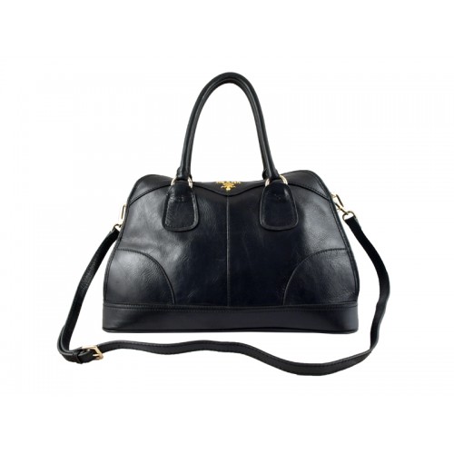 Borsa Prada in pelle di cervo lucida con manico superiore, nera