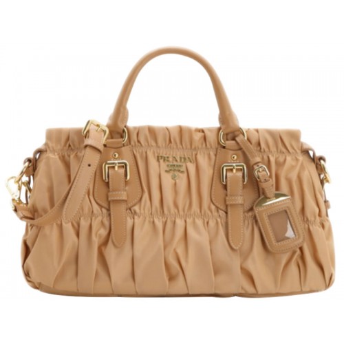 Borsa Prada Tessuto Gaufre In Nylon Con Manico Superiore Beige