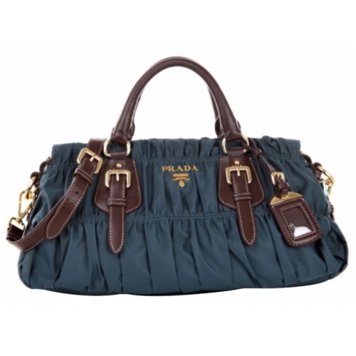 Borsa con manico superiore in nylon Prada Tessuto Gaufre blu