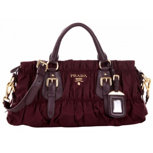 Borsa con manico superiore in tessuto Gaufre di Prada in nylon bordeaux