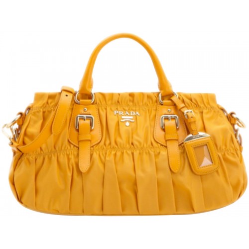Borsa con manico superiore in nylon Prada Tessuto Gaufre gialla