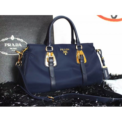 Borsa a mano Prada Tessuto in nylon e morbida pelle di vitello blu