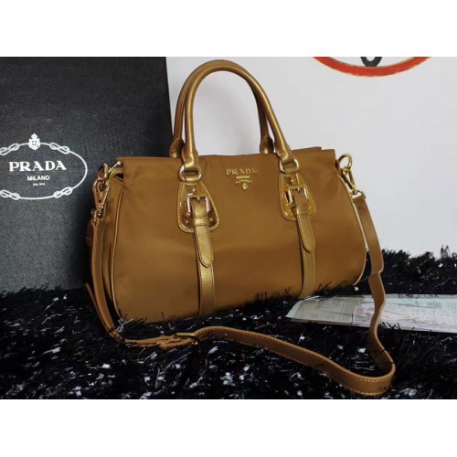 Borsa a mano Prada Tessuto Nylon Soft Vitello in pelle Cammello