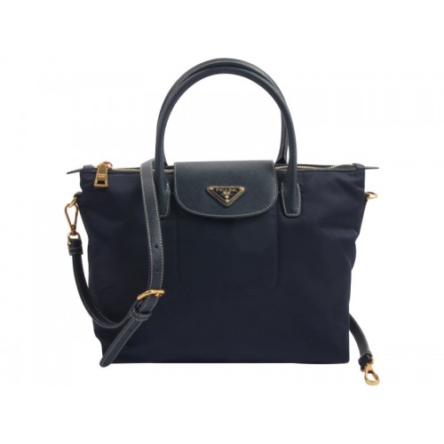 Borsa Prada Tessuto in nylon con finiture in pelle blu scuro