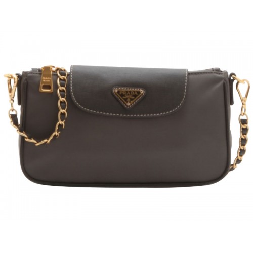 Borsa da polso Prada Tessuto Nylon con pelle Saffiano grigia