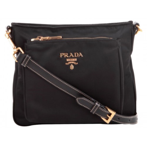 Borsa a tracolla Prada in tessuto saffiano e nylon con pelle, nera