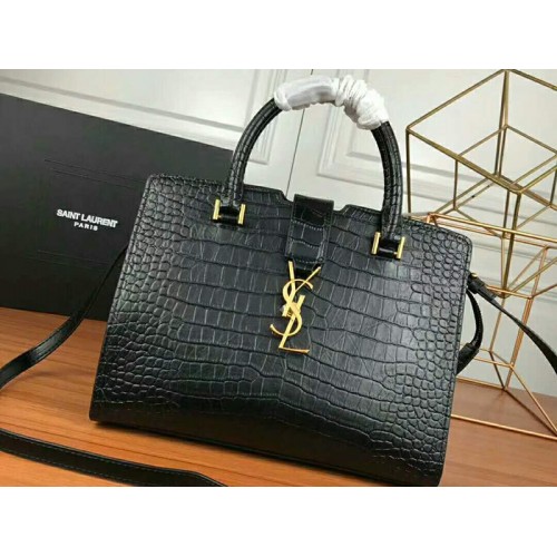 Saint Laurent Cabas Ysl Small in pelle liscia nera