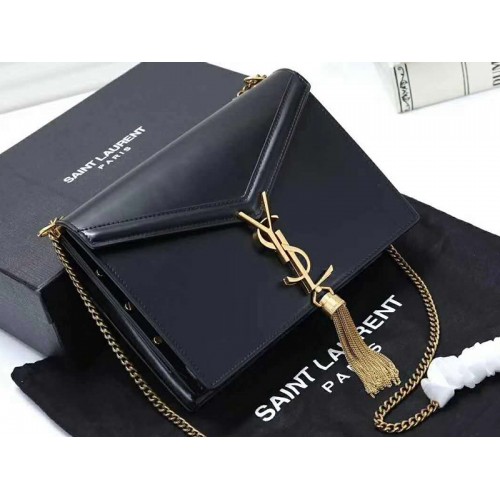 Borsa con chiusura monogramma Cassandra di Saint Laurent in pelle di vitello nera