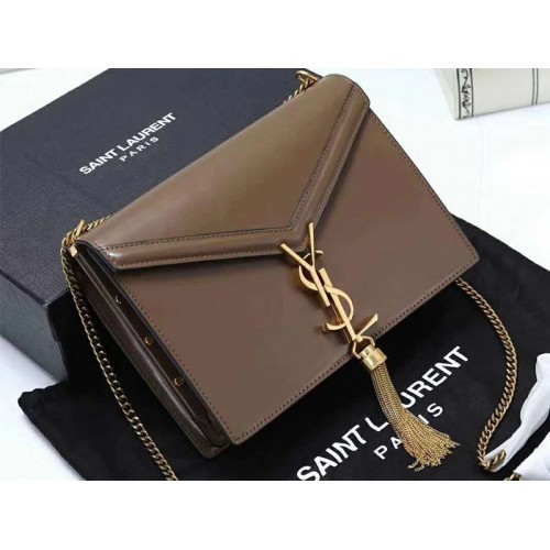 Borsa con chiusura monogramma Cassandra di Saint Laurent in pelle di vitello marrone