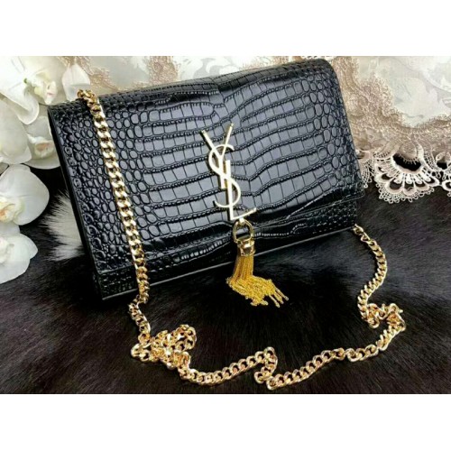 Saint Laurent Kate Medium con nappa in coccodrillo e pelle lucida nera