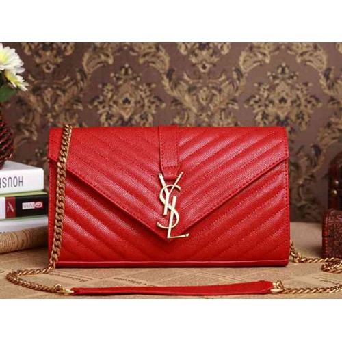 Borsa a mano media YSL Monogram in pelle trapuntata con texture effetto polvere rossa