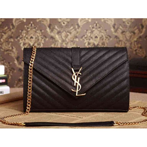 Borsa a mano media YSL Monogram in pelle trapuntata nera con texture effetto polvere