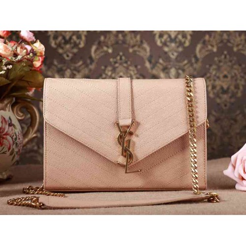 Borsa a mano piccola YSL Monogram in pelle matelassé beige scuro con texture grana