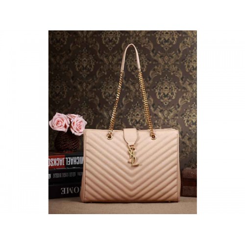CLASSIC SAINT LAURENT SHOPPER TOTE CON CATENA IN METALLO, DOPPI MANICI IN PELLE E CHIUSURA CON FIBBIA AD INCASTRO YSL SIGNATURE.